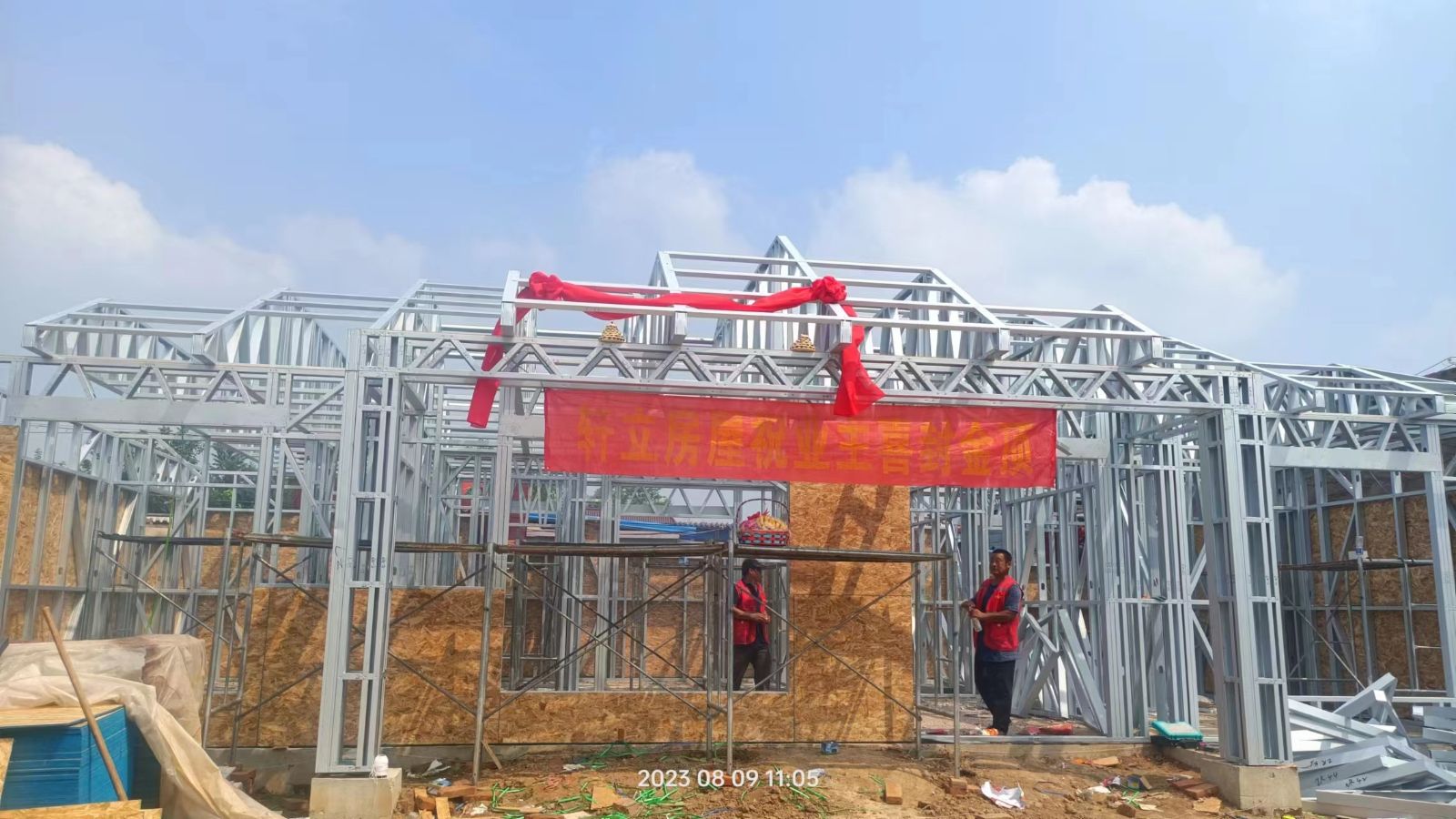 共同庆贺轻钢房屋进入了施工新阶段。